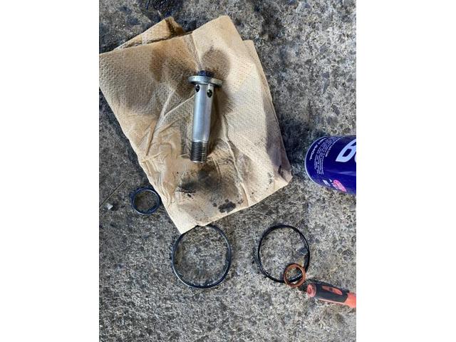 ついでにセルモーターが油だらけ こちらも整備します。 セルモーターの上についているオイルクーラーからオイル漏れ