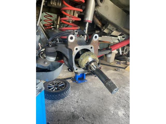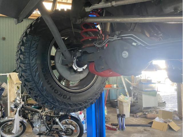 ジムニーです。 走行中 ハンドルがガタガタと振れるときがあるので入庫しました