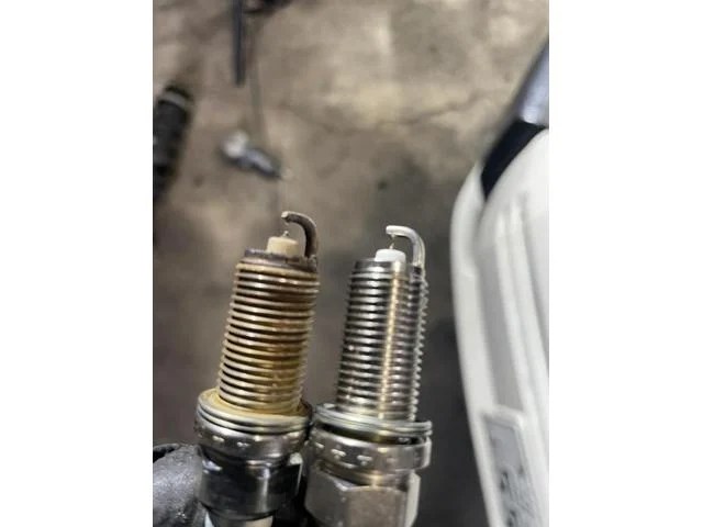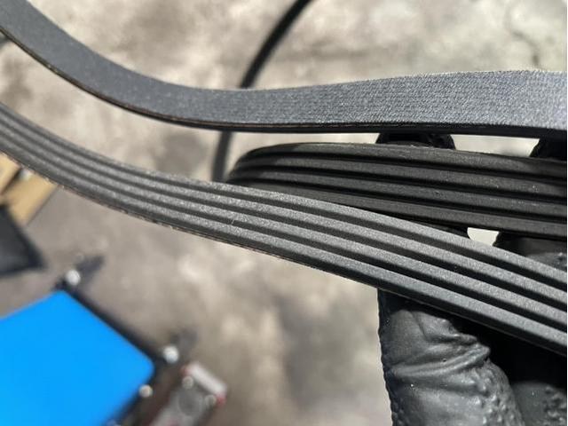 ベルトは溝が大きくなっていました 溝の細い方が新しいベルトです プラグを交換します
