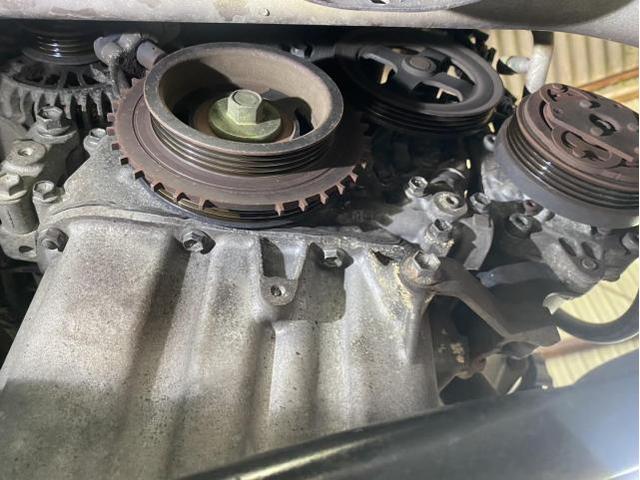 リフトアップして点検 整備します。 ベルトがだいぶお疲れでしたので交換させていただきました。