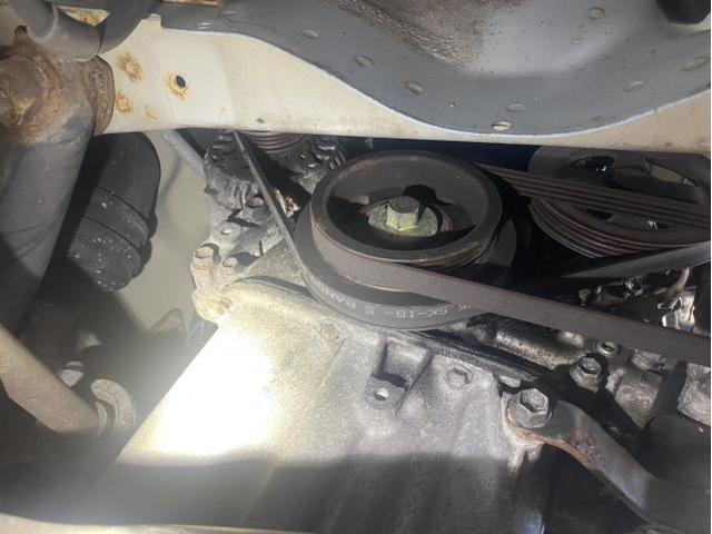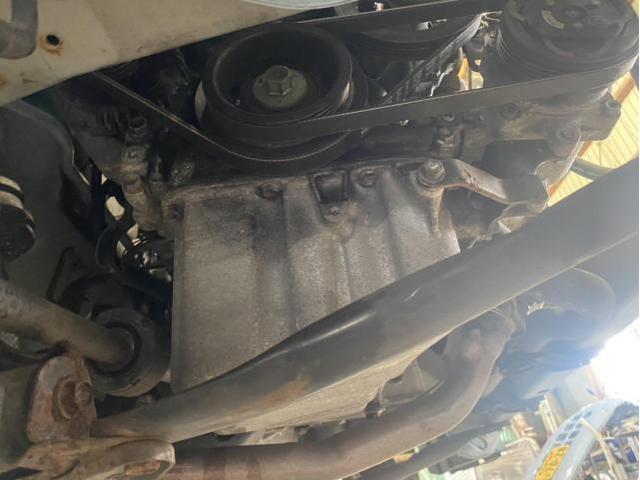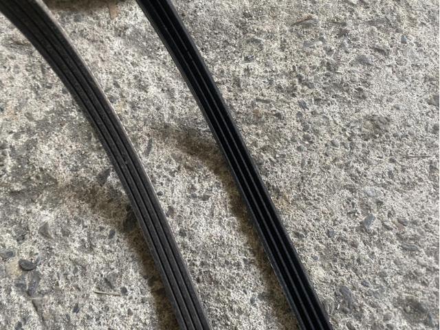 点検するとベルトに劣化がみられました。 ベルト類を新品に交換します。 新品のベルトとの差は歴然です。