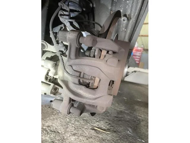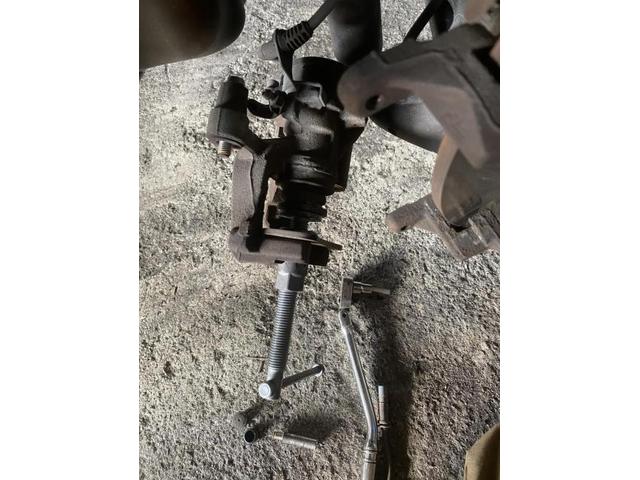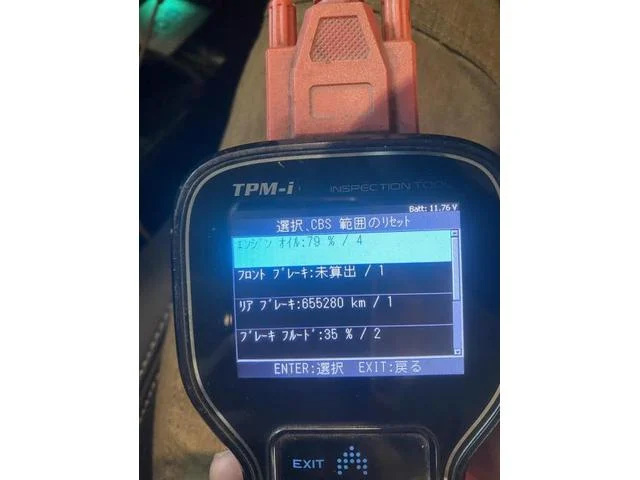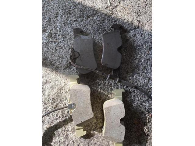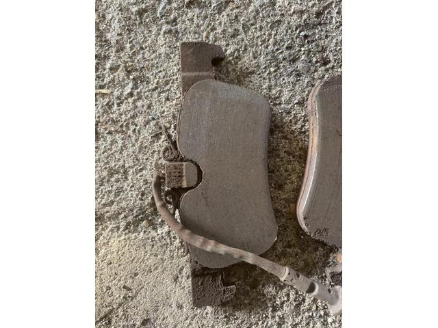 ブレーキパットの残量がすくなく、センサーが削れていました。 新品のパットと比べると残量の差は歴然です。 組付けてリセット作業をします。