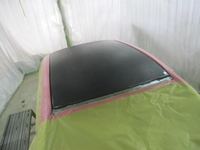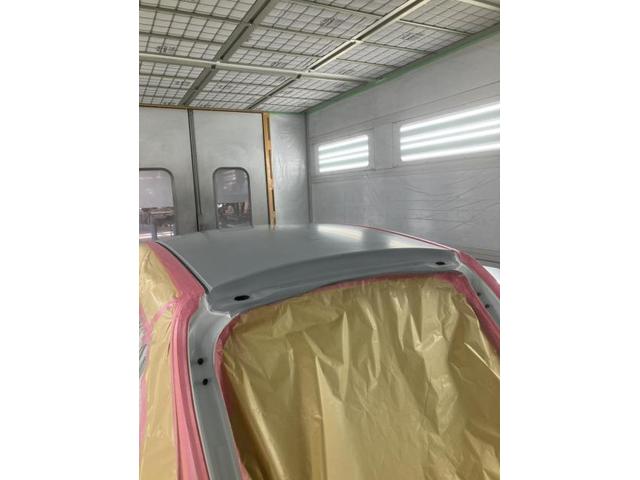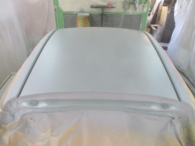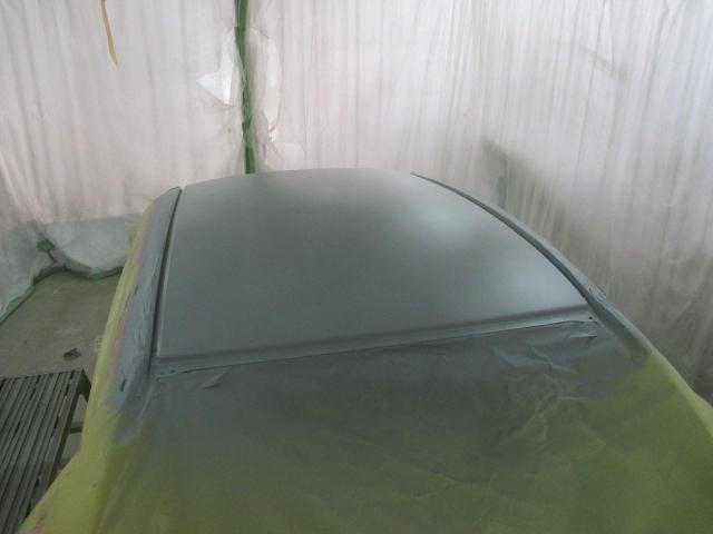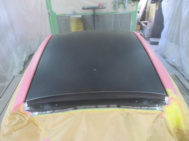 構造接着剤とスポット溶接でとめたルーフパネルを下塗りします。
