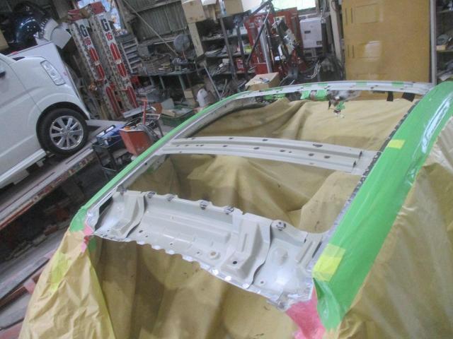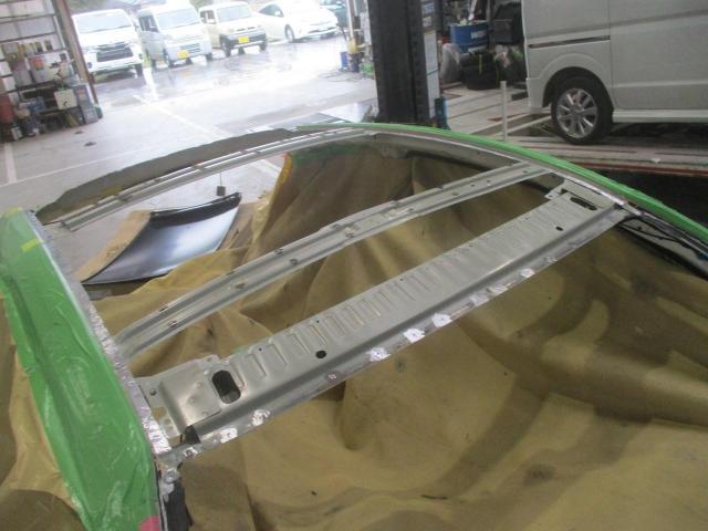 まずはルーフパネルをとめているスポット溶接を外して、損傷したルーフパネルを取り除きます。