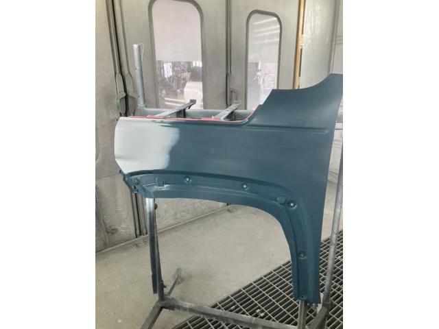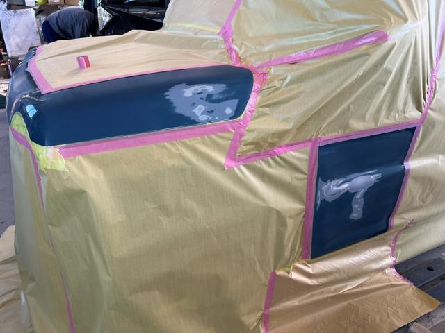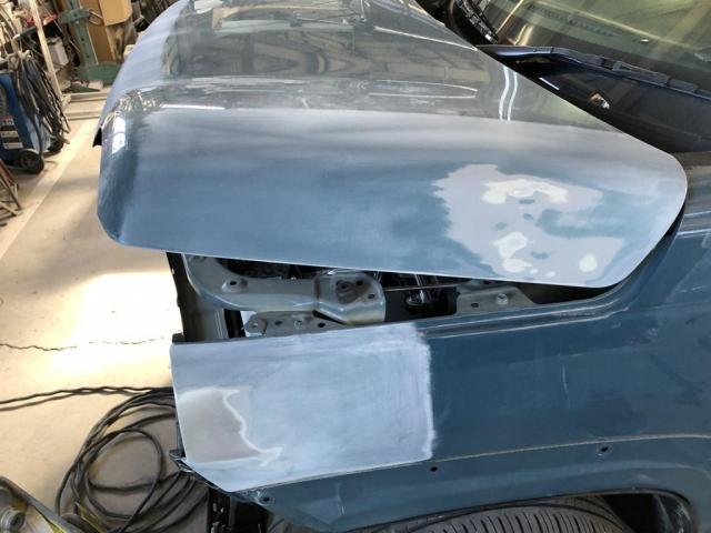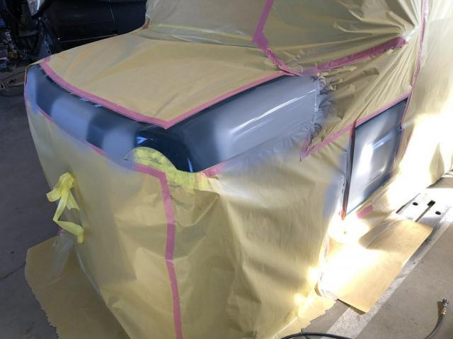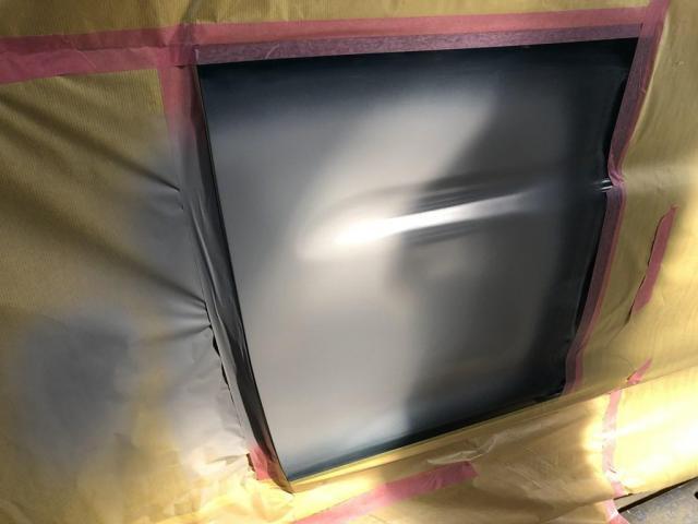 その際 溶接したりして鋼板に熱を加えることは最小限にして、鋼板へのダメージを減らしています。 サフェーサーを塗装します。 上塗りは塗装ブースで行います。