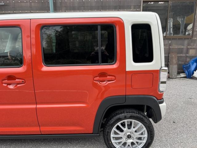 スズキ ハスラー 左リアドアを新品交換 左リアフェンダー 鈑金で修理しました 塗装はツートン 2色塗