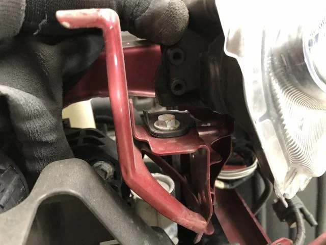 ヘッドライトを外して、折れた足を補修します。