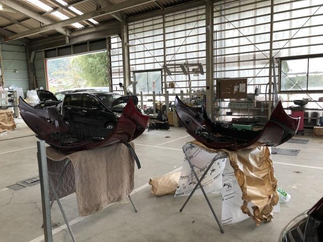 新品バンパーを組み付けていきます。 ここでトラブルが