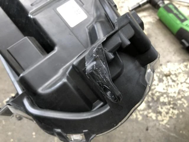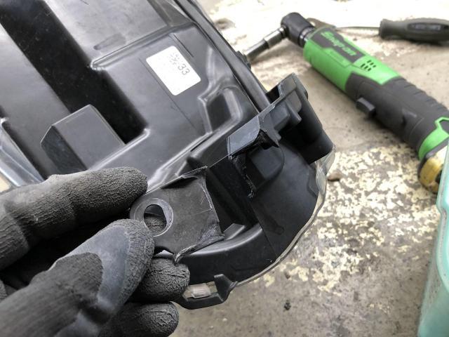 ヘッドライトを外して、折れた足を補修します。