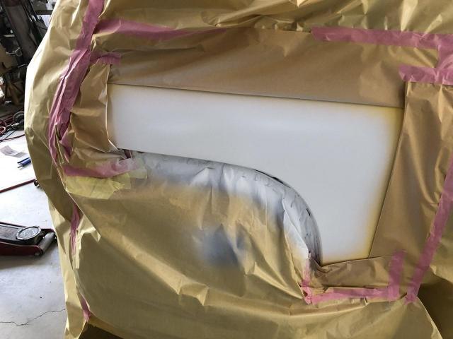 リアバンパーをまずは白色に塗ります。