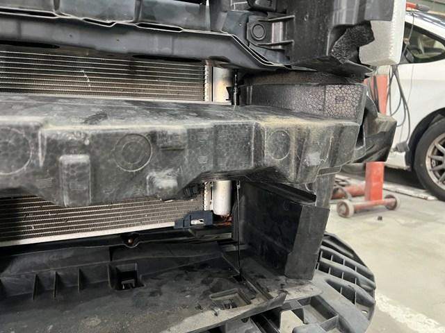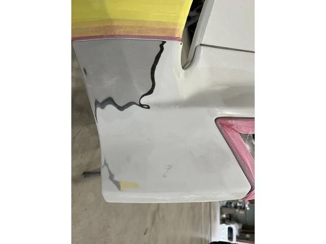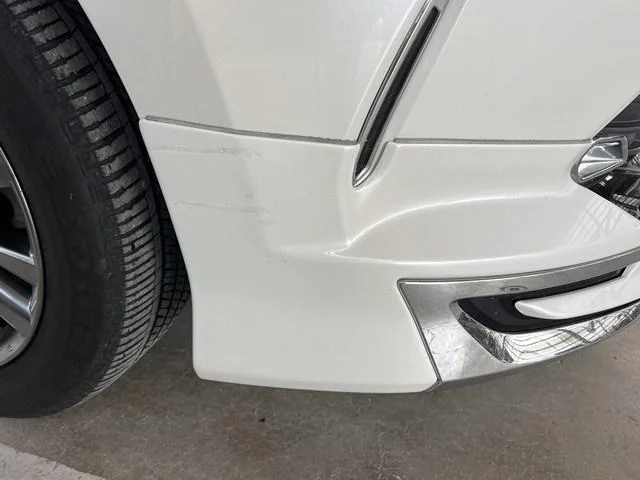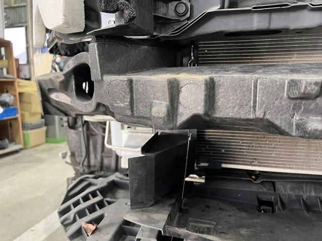 バンパー左側はわれてしまってますので、バンパーの補修とスポイラーにも傷があるので修理します。 スポイラーの傷です。 まずはバンパーが落ちないように、ワイヤーで吊り上げ加工を行いました。