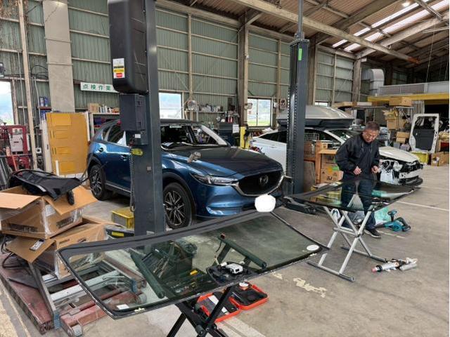 マツダ CX-5 フロントウインドウガラス 交換 車両保険で修理です。